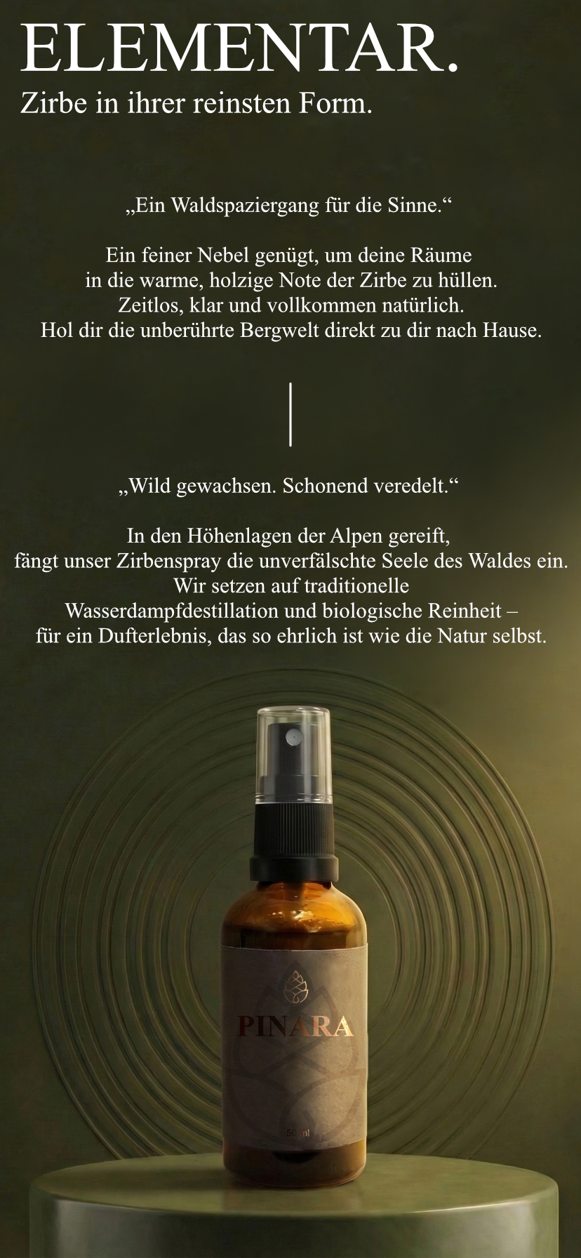 Reinheit: Unsere Zirbenprodukte bleiben naturbelassen – ohne künstliche Zusätze oder chemische Behandlungen, damit das ätherische Pinosylvin seine volle Kraft entfalten kann.